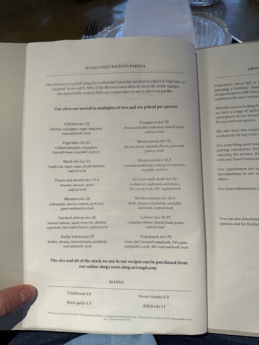 While the pricing reflects its fine-dining status, the experience justifies the cost. For anyone curious about modern Spanish cuisine beyond tapas, Arros QD is a must-visit.